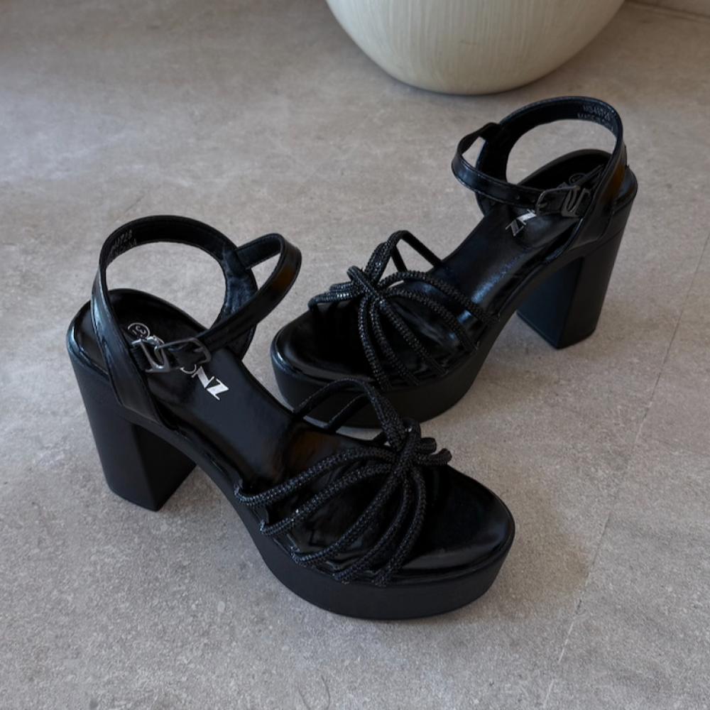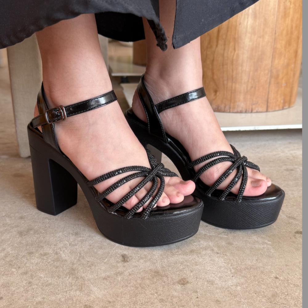 أبرزي ثقتك وأناقتك مع هذا الصندل الأسود من Bronz، بتصميم يجمع بين الراحة واللمسة العصرية الجذابة. يتميز الصندل بأشرطة متقاطعة أنيقة مع إبزيم جانبي قابل للتعديل يضمن ثبات مريح، بالإضافة إلى كعب عريض عالي يمنحك طول وثبات أفضل في كل خطوة.